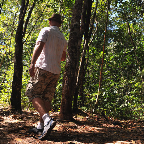 Noc spędzamy śpiąc w campingu niedaleko miejsca, do którego dopłynęliśmy łodzią. Camping to tak naprawę kilka wiat zrobionych z drewnianych belek podpierających dach. Między belkami rozpięte są hamaki, które pełnią nam rolę łóżka.